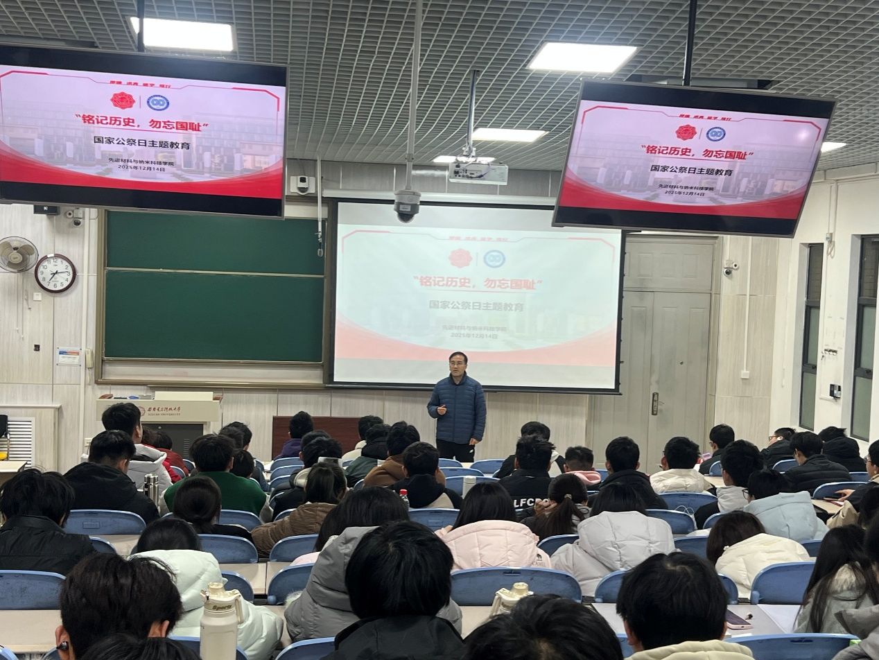 学科特色与学生实际,向全体同学提出三点期望:一是要勿忘历史,从民族深重苦难中汲取奋进力量,坚定理想信念,筑牢精神根基;二是要珍惜时光,深刻理解和平与发展环境的来之不易,将悲愤之情转化为拼搏动力,珍惜在校学习的每分每秒;三是要努力学习,聚焦先进材料与纳米科技领域前沿,刻苦钻研,掌握过硬本领,立志科技报国,将个人成长融入国家发展与民族复兴的伟大征程中,以实际行动告慰先烈,守护历史真相,捍卫人类尊严,共创美好未来。